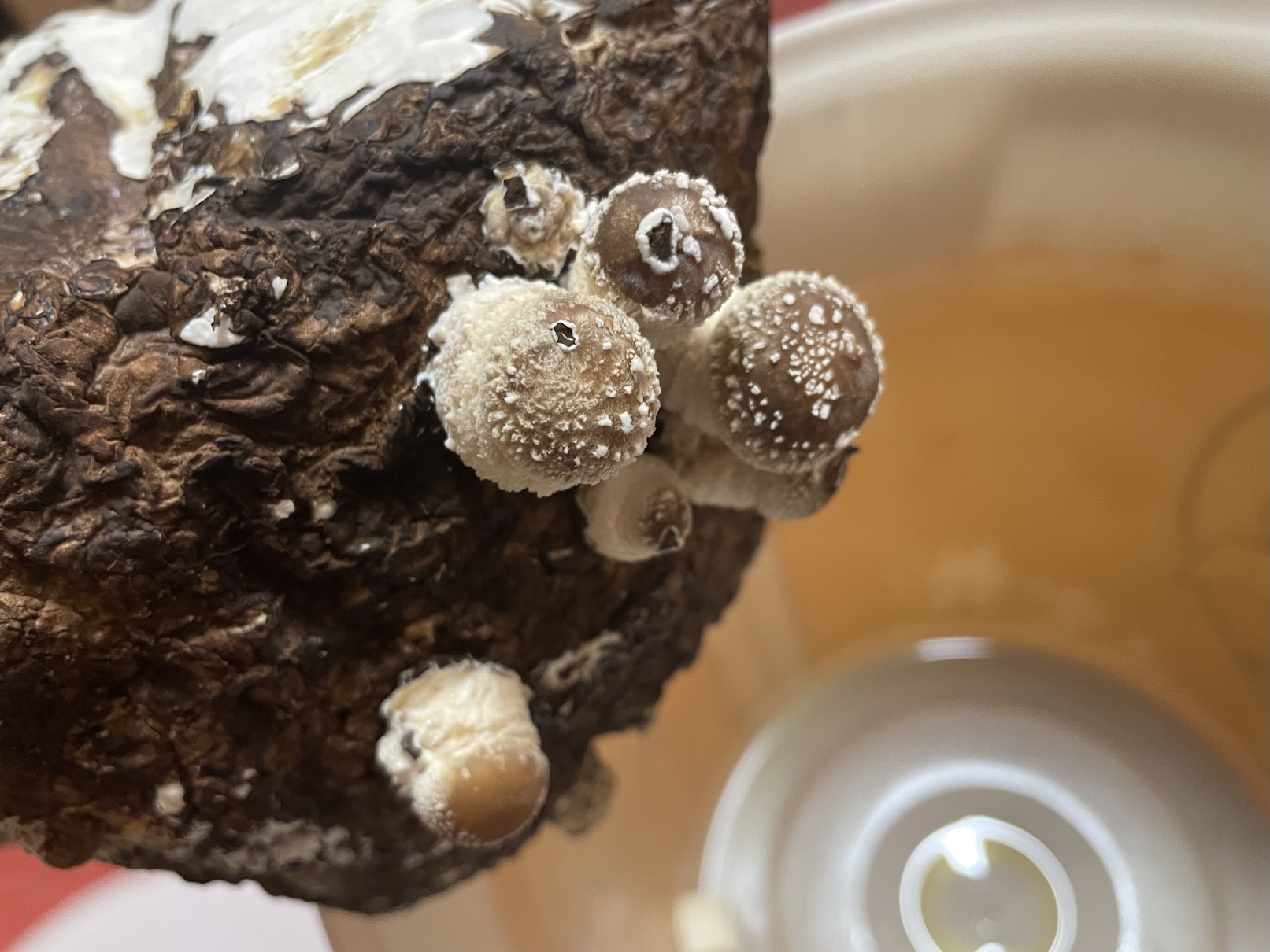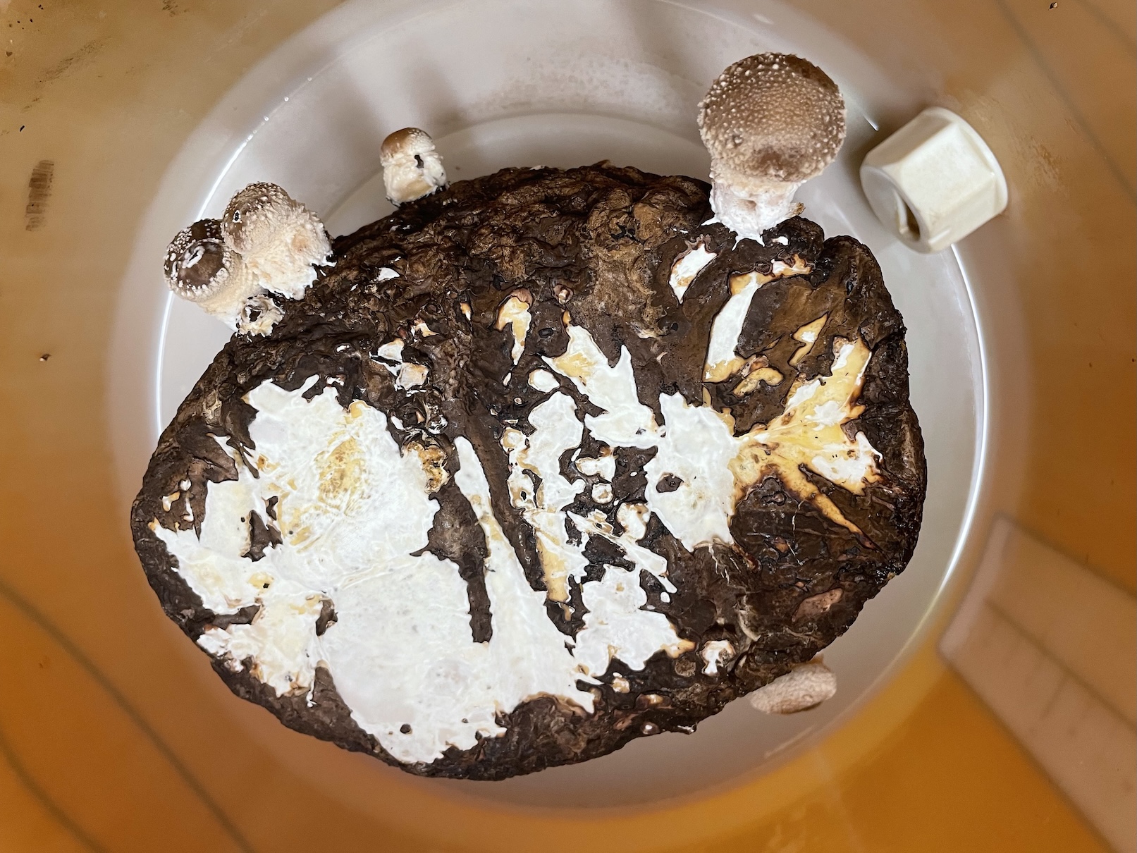 Přesně tak. Koupili jsme si sadbu shiitake za nějakých 140 korun. Byl u ní pochopitelně i návod k pěstování a také obrázky. Návod ale spočívá v tom, že máte sadbu v místnosti s pokojovou teplotou a čekáte, až huby začnou růst. Po týdnu od obdržení sadby se tak stalo a úroda byla více než solidní, nějakých 7 hub.