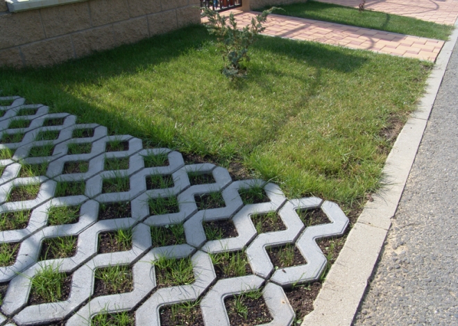 Vegetační dlažba nabízí symbiózu s trávníkem