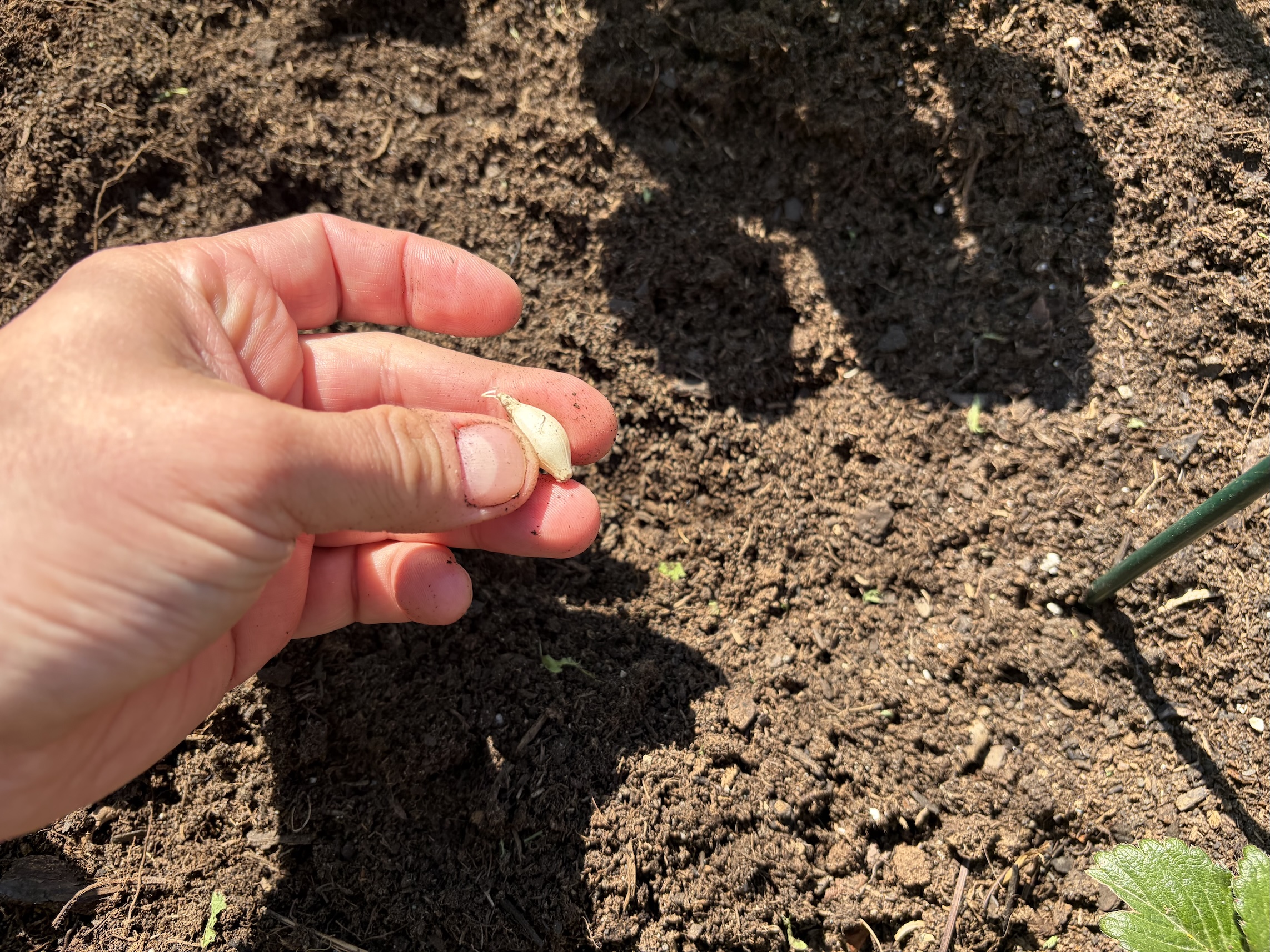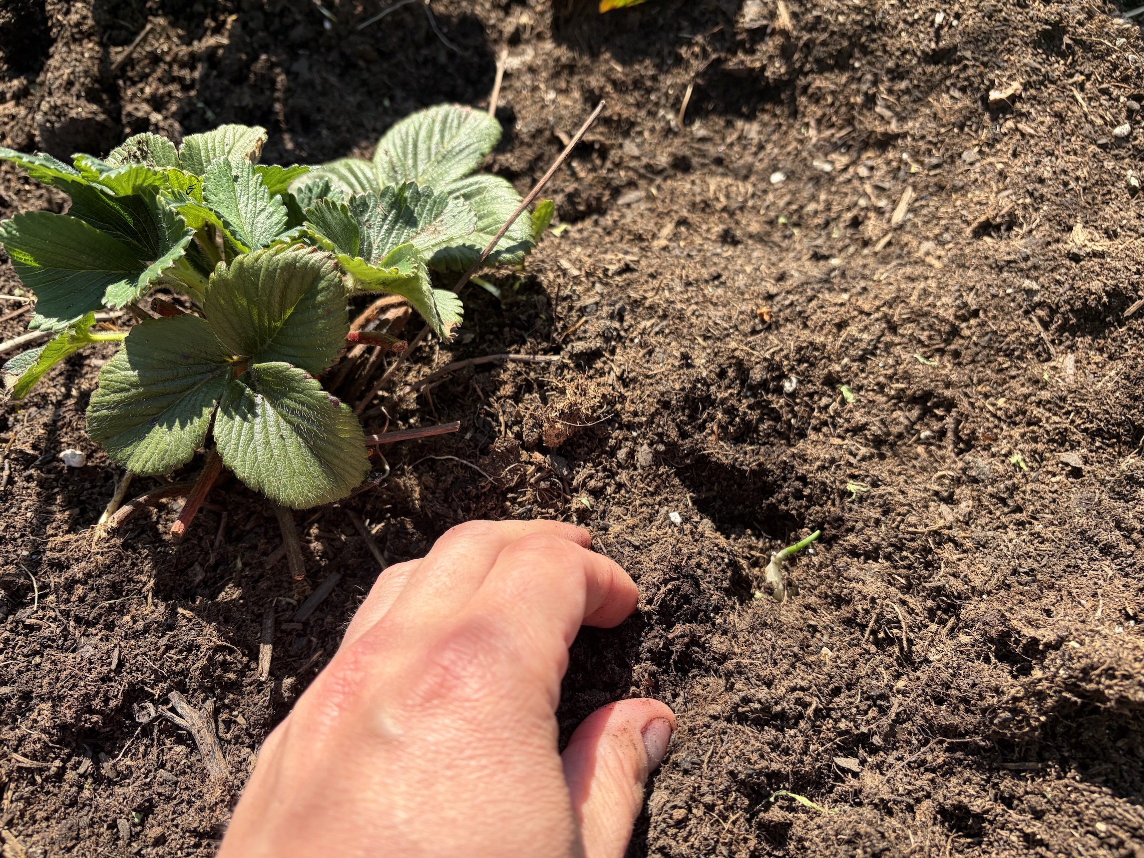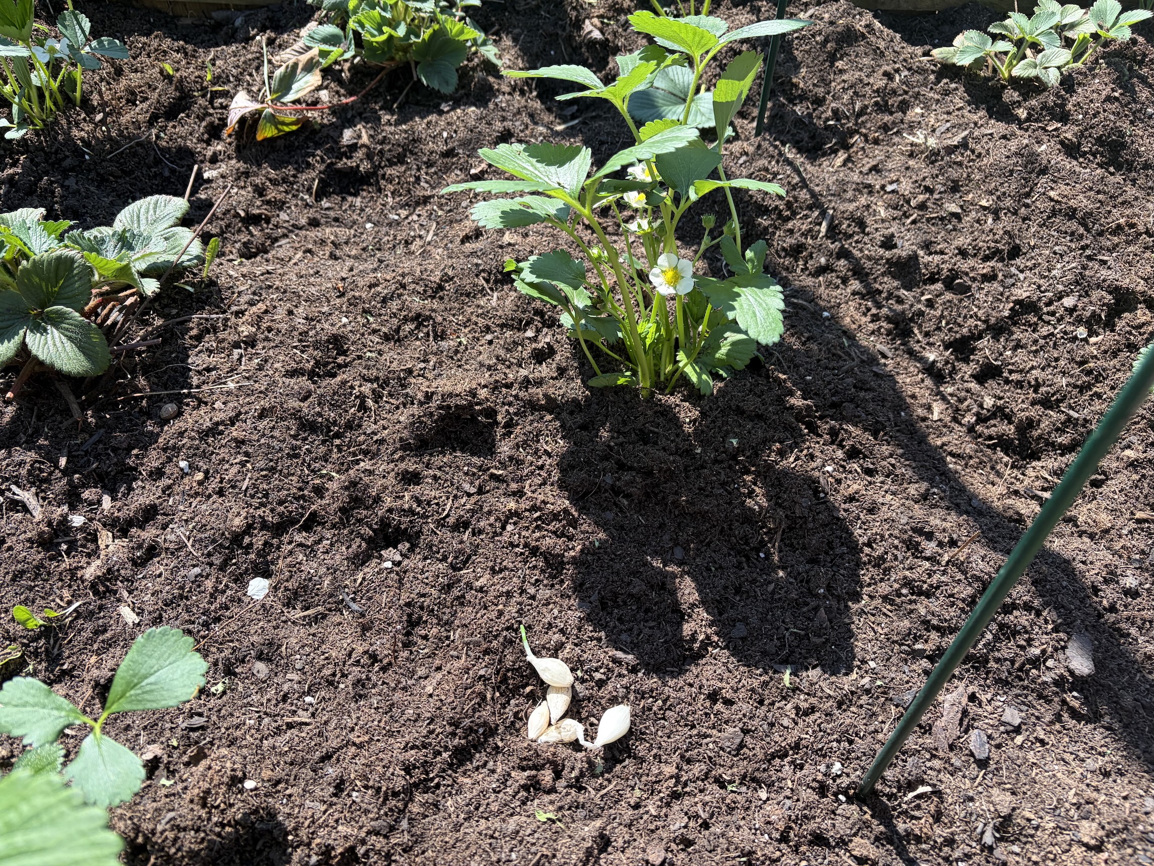 Vysazovali jsme nové jahody a mezi ně cibuli sazečku